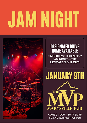 Live Music: Exciting news! Jam Night has returned to the MVP, Kimberley's longest-running Jam Night. Check our Facebook page for dates details!